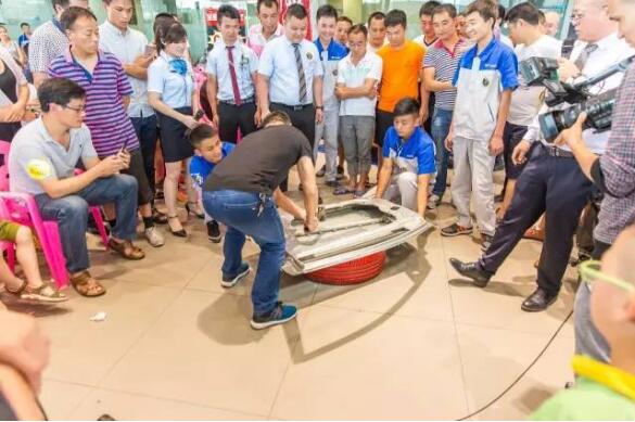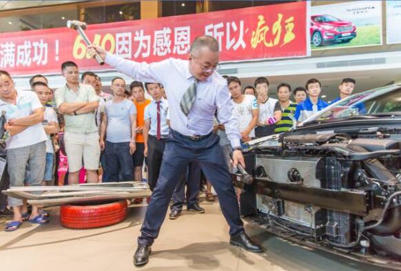 特地請上一名想買車的客戶上來瘋狂砸車,