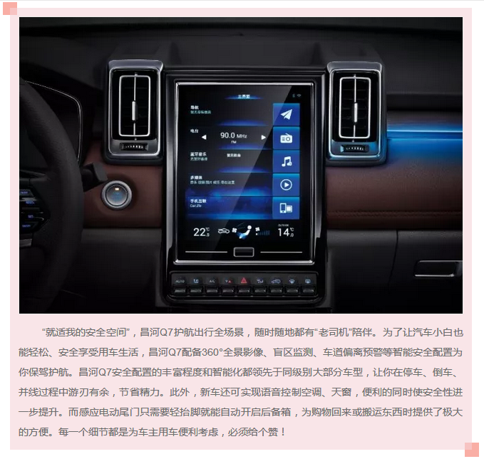 昌河Q7定位為“智能空間SUV“,為充滿活力的,喜歡表達(dá)自我、享受當(dāng)下,更渴望嘗試新鮮事物的年輕一代消費(fèi)者量身打造,新車打出“就適我的空間”這一鮮明產(chǎn)品主張,旨在為互聯(lián)網(wǎng)下的新世代年輕人創(chuàng)造一部能夠滿足日常通勤、商務(wù)、娛樂等全場(chǎng)景需求的全能產(chǎn)品。