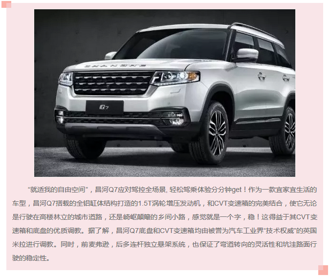 面對(duì)時(shí)代變革的新趨勢(shì),昌河汽車以用戶需求為原點(diǎn),以移動(dòng)出行辦公需求和移動(dòng)出行娛樂需求為突破點(diǎn),打造出了一系列重點(diǎn)車型。昌河汽車“敢創(chuàng)同行”戰(zhàn)略發(fā)布會(huì)同步上市全新車型——北汽昌河Q7,是其2018年新戰(zhàn)略方向下的重磅戰(zhàn)略車型。