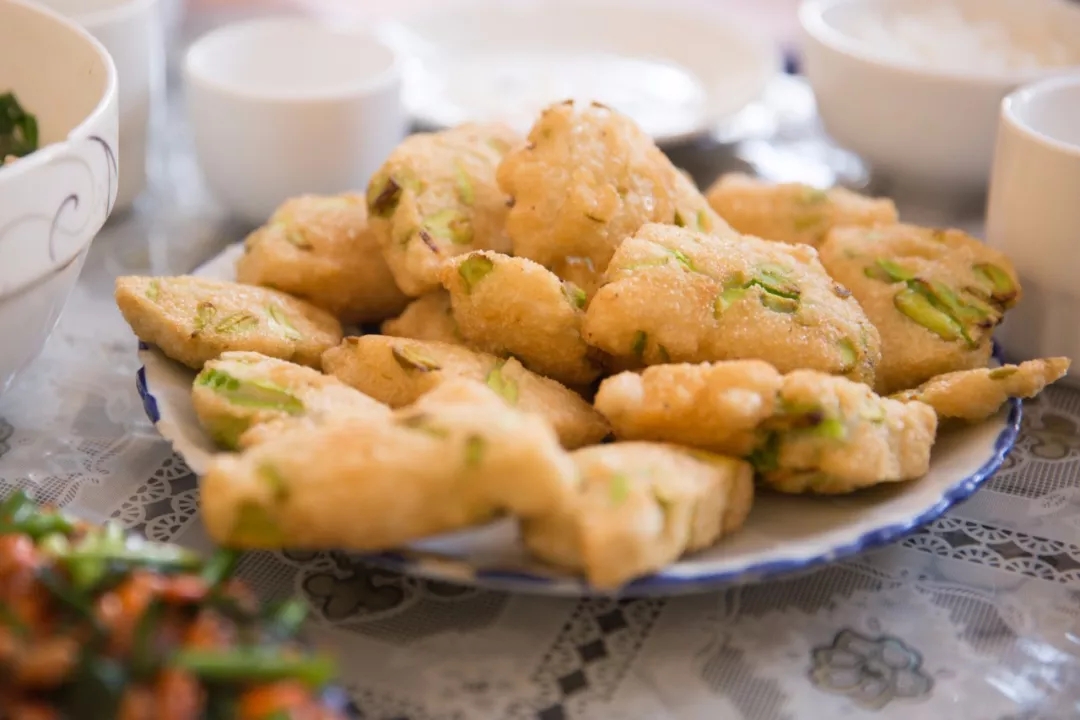還有一道菜是我特別喜歡的,問(wèn)向?qū)Т蟾缢牟嗣鞘裁矗鹪唬骸靶Q豆包包”,是當(dāng)?shù)厝说慕蟹ǎ娱L(zhǎng)得乖巧,名字也這么可愛(ài)呢。它更像是一道餐后小甜點(diǎn),軟軟的糯米包裹著酥松的蠶豆入鍋炸,外酥里嫩,吃的時(shí)候蘸少許白糖,口感極佳。