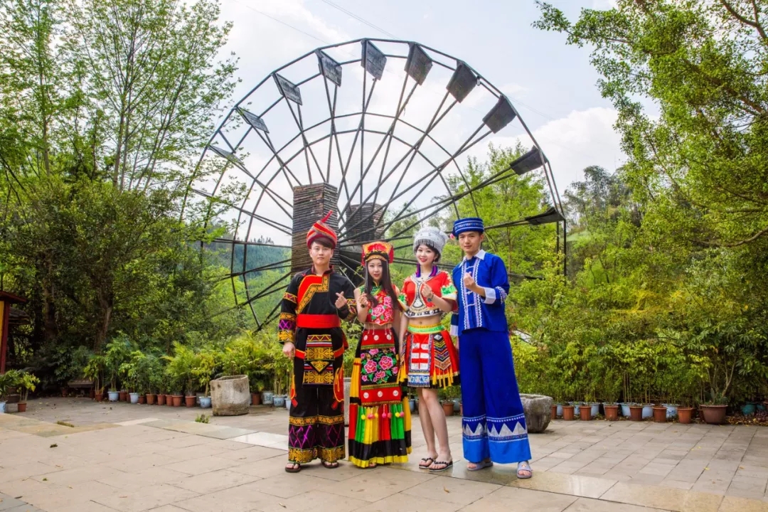 看完油菜花田,我們循著明代著名旅行家徐霞客的足跡來(lái)到多依河畔,換上少數(shù)民族服飾,坐在竹筏上漂流,體驗(yàn)純正的民族風(fēng)情。古老而巨大的圓盤(pán)水車(chē),嘎吱嘎吱地轉(zhuǎn)動(dòng)著,仿佛把我們帶進(jìn)古老的年代。