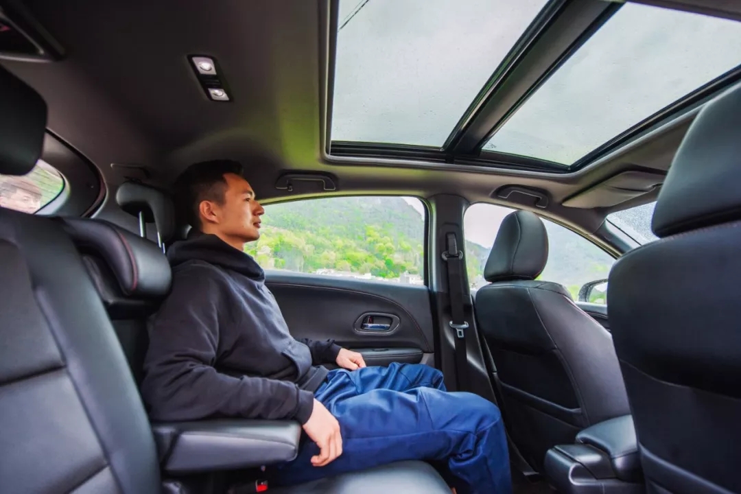 坐在后排,我仔細(xì)觀察起XR-V的全景天窗,它面積大,采光效果好,如果是白天的話(huà)坐在車(chē)?yán)镉幸环N通透、不受束縛的感覺(jué)。坐在駕駛室的海龍見(jiàn)我觀察天窗,還不忘提醒我,天窗及遮陽(yáng)板都可以電動(dòng)一鍵開(kāi)閉,邊說(shuō)還邊鄭重其事地演示了一遍,逗得我們直樂(lè)。