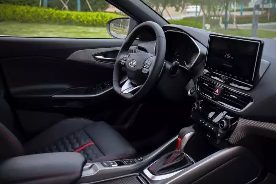 內(nèi)飾也同樣如此,運(yùn)動(dòng)化的設(shè)計(jì)貫穿整個(gè)車(chē)廂。源自利劍的設(shè)計(jì)靈感以及紅色縫線(xiàn)座椅讓它擁有了戰(zhàn)斗機(jī)般的座艙氛圍。而7英寸液晶儀表盤(pán)還可顯示單圈計(jì)時(shí)器、實(shí)時(shí)發(fā)動(dòng)機(jī)扭矩及渦輪增壓壓力、G值等只有在頂級(jí)運(yùn)動(dòng)高性能車(chē)上才有的數(shù)據(jù)。