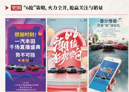 疫情之下,線下活動(dòng)無(wú)法開(kāi)展,傳播關(guān)注空間被擠壓,為了提升品牌聲量、促進(jìn)集客,一汽豐田在上半年策劃了一場(chǎng)歷時(shí)一個(gè)多月,千余場(chǎng)連續(xù)的線上直播活動(dòng)。