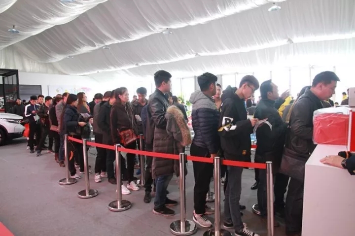 現(xiàn)場(chǎng)參與活動(dòng)的車(chē)友們有序排隊(duì)等待報(bào)名