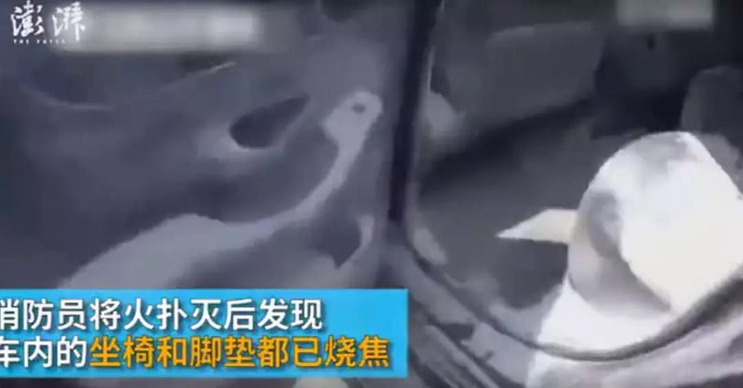 消防人員到場后,車內(nèi)火情還在燃燒,一時間聯(lián)系不上車主,為防止車損過大,消防隊員只好實施了破窗滅火,車窗被砸開后,白色煙霧一下涌了出來,滅火后,消防員從車內(nèi)拖出了一條燒焦的腳墊,真皮座椅也都被燒毀了。